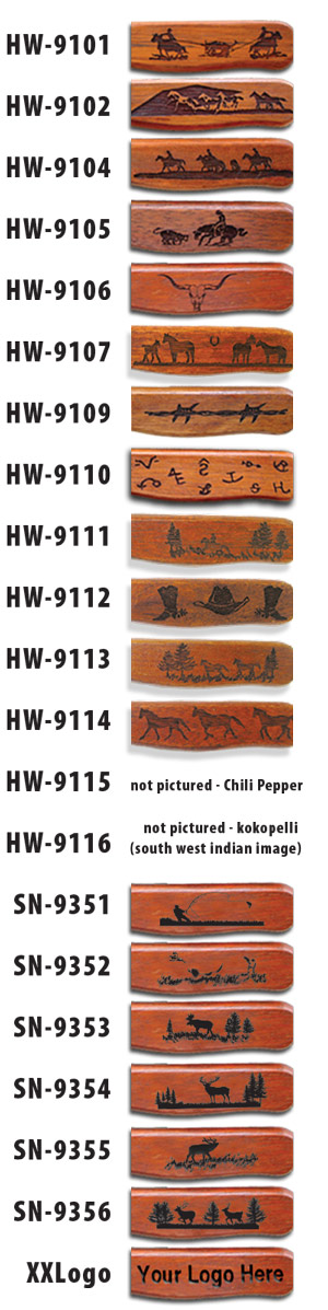 With most of our wood products, you can choose the engraving that would best suit your decor. As a wedding gift or home decor, your in charge of what theme you want. This versatility is great, especially when you can choose an engraving on your steak knives which matches your BBQ set or hand towels. Take a look around our website, the engraving selections come up under each product which has this feature. You can always refer back to here for a visual. Have fun, spice things up, match things up, to make your home, cabin or RV fit the western theme you deserve.
