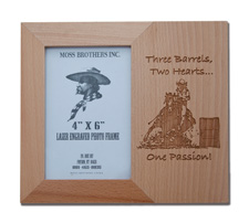 Laser Engraved Picture Frame, fits 4x6 photo Three Barrels, Two Hearts One Passion!