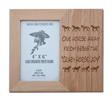 Laser Engraved Picture Frame, fits 4x6 photo One Horse away from being the "Crazy Horse Lady"